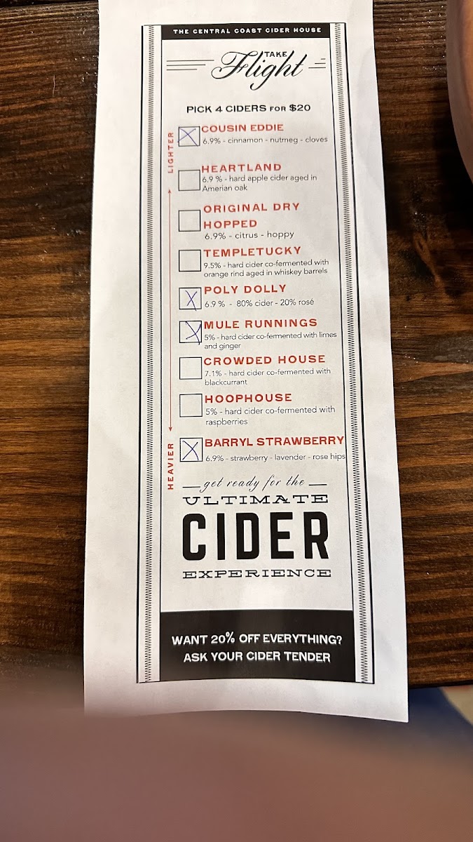 “ My wife and I made our first visit here over the weekend and were blown away by the friendliness of the staff. We instantly hit it off with them and really enjoyed trying the ciders that they poured for us. Went home with two 4 packs including the Parrothead pineapple cider (tasted exactly like a pineapple minus the sugary additives) and the crowded house which I especially loved. It was super dry/sharp and was great on a hot Saturday in Paso. I can see why they’re highly regarded in this area for being on of the county’s top cider distributors after tasting a few. This is one of the coolest most expansive spaces I’ve seen in Tin City and the staff is extremely kind. They have a 6 beer draft depot attached to their parcel for beer drinkers as well. Look forward to visiting again in the future ”
