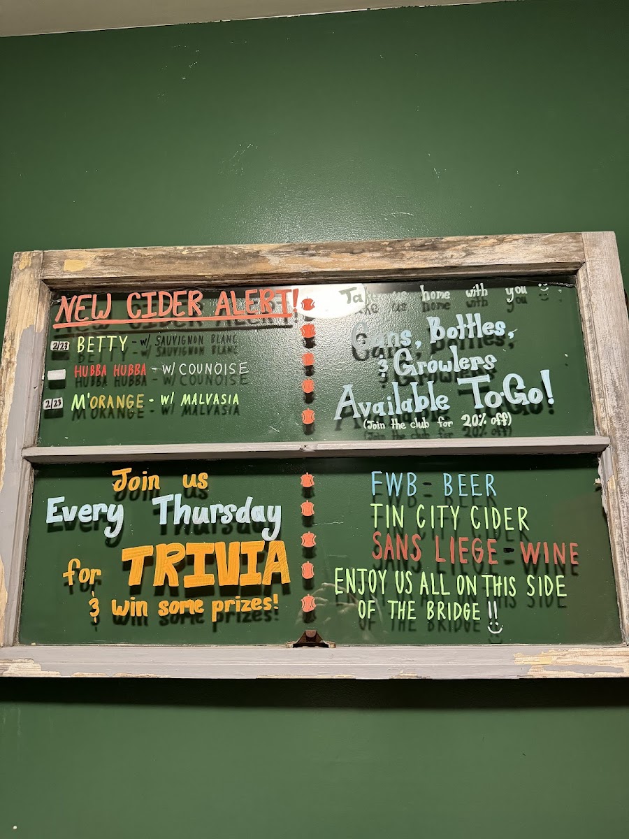“ Tin City Cider is such a fun spot to hang out with friends! They offer cider flights for just 20, and you get to choose up to 4 different 4oz pours—which is a great way to try a variety of their unique and flavorful ciders. The vibe is super chill and laid-back, perfect for relaxing and catching up. Every cider we tried was refreshing and well-crafted—you can really tell they put care into what they make. If you’re into ciders or just looking for a cool place to unwind with great drinks, definitely check this place out! ”